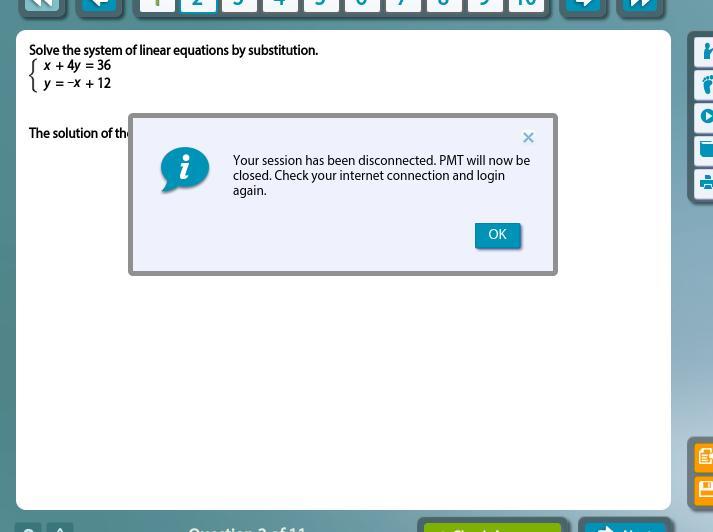 - 2x + y = - 2(- 3) + 5 = 6 + 5 = 11 ← False