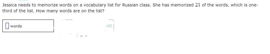 Jessica needs to memorize words on a vocabulary list for Russian class. She has memorized 21 of the words, which is one-third of