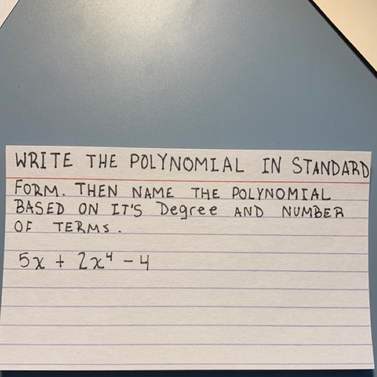 Standard form of the polynomial will be in the form of (ax⁴+ bx³+ cx²+ dx + e).