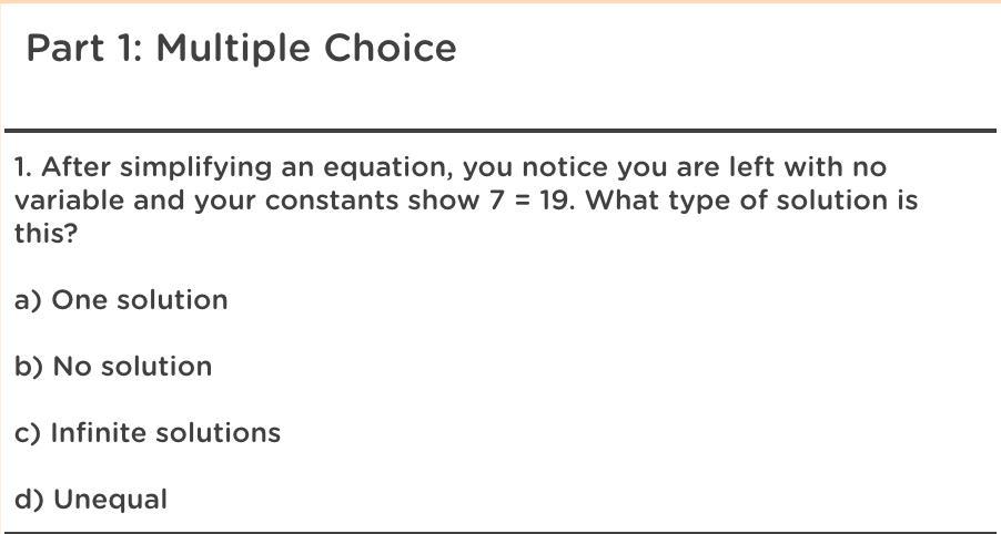In both equations, the slope of x is the same, but the y-intercept is not, which means they are parallel. Therefore, this system of equations has no solutions.