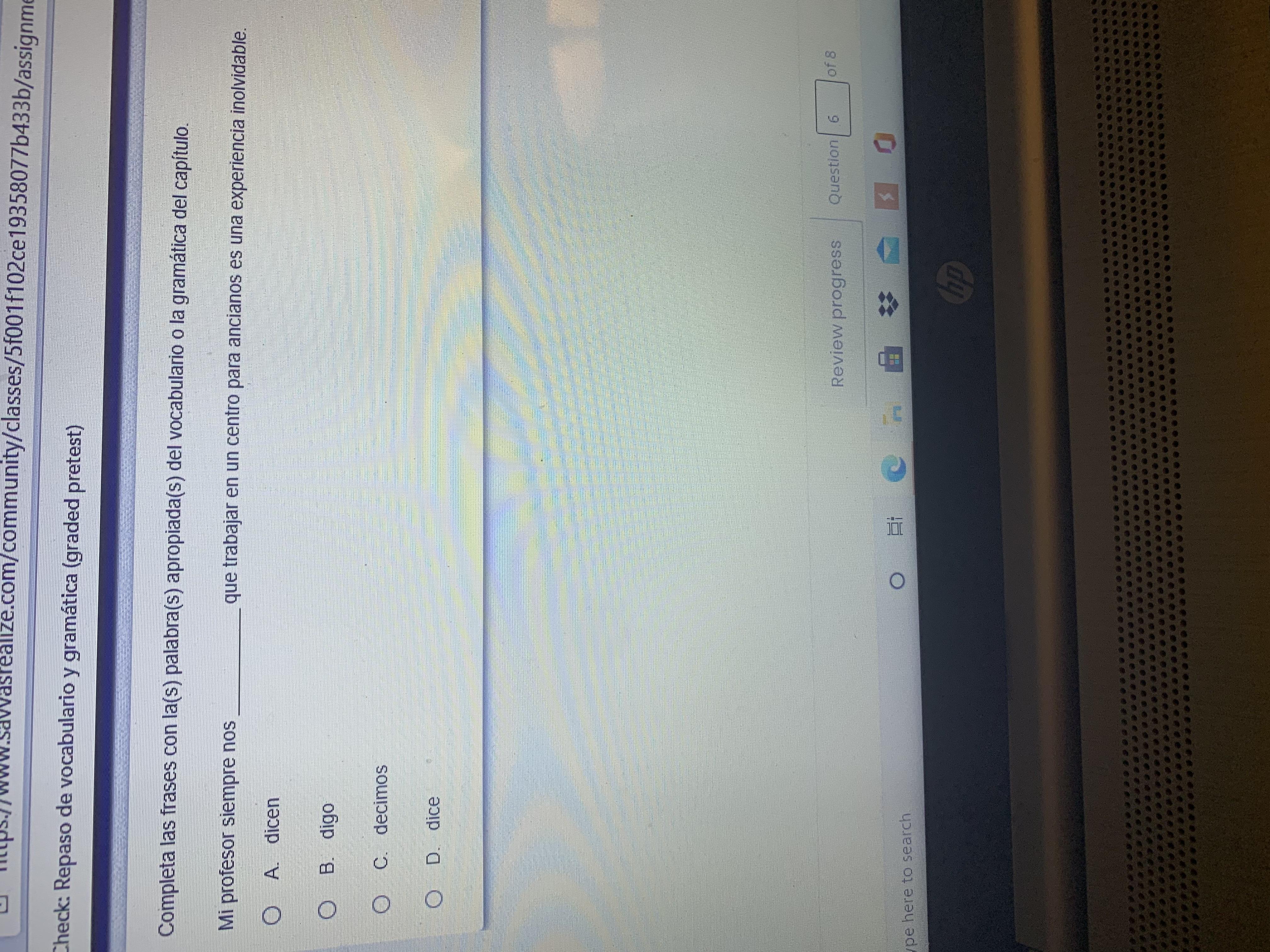 Mi amigo (dice) que la clase de italiano es súper difícil. Cuando él (pide) ayuda con su tarea, yo siempre (always) (digo) la misma cosa: "Es cuestión de tener disciplina". Debe ir a clase preparado, estudiar una o dos horas al día y hablar con el profesor si no entiende la materia. Si mi amigo (sigue) mis consejos (advice), va a (obtener) lo que quiere: ¡una A!