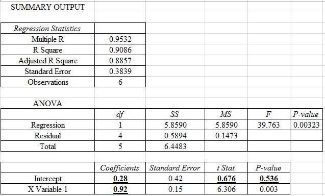 Use Excel to perform the regression analysis.