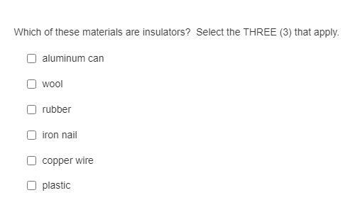 The answer is Rubber, Plastic, and Wool