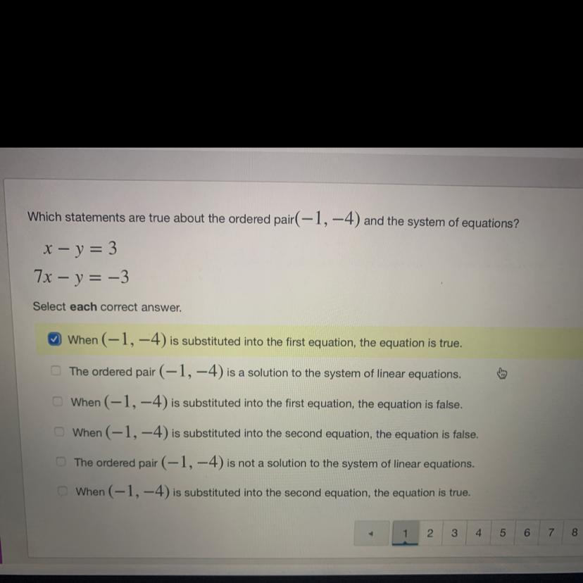 <em>b) The ordered pair(-1, –4) is a solution to the system of linear equations.</em>