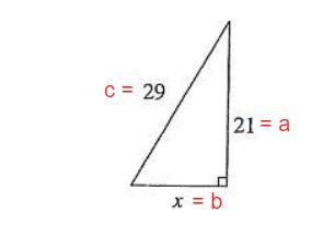(21)² + (x)² = (29)²
