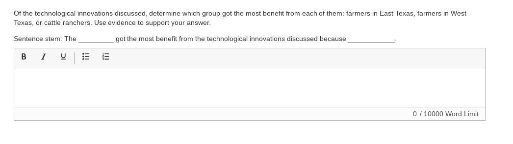 farmers in West Texas, or cattle ranchers. Use evidence to support your answer. Sentence stem: The _________ got the most benefit from the technological innovations discussed because ____________.