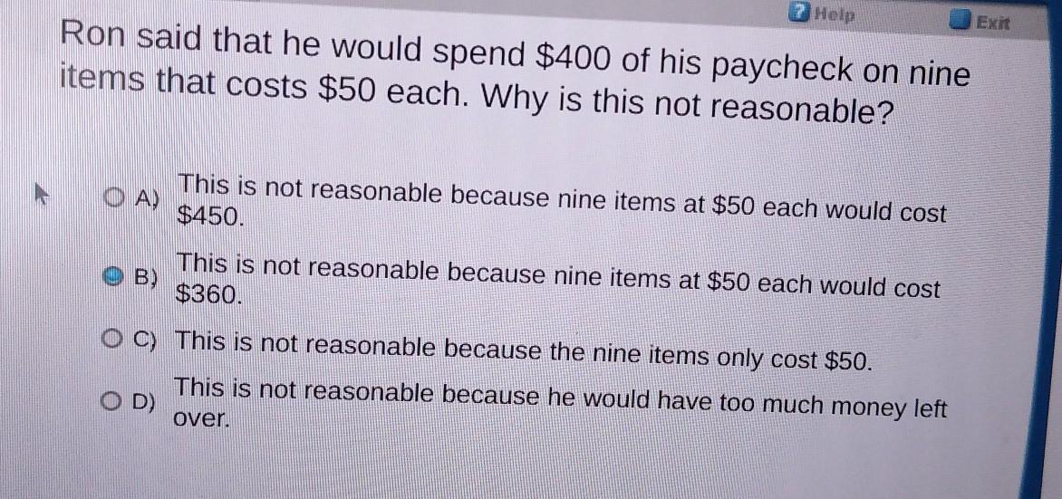 9 items at $50 each would be 9 × $50 = $450, which is more money than he has.