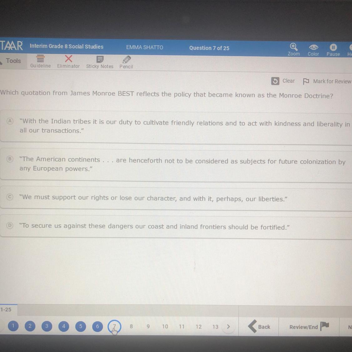 the correct answer is B