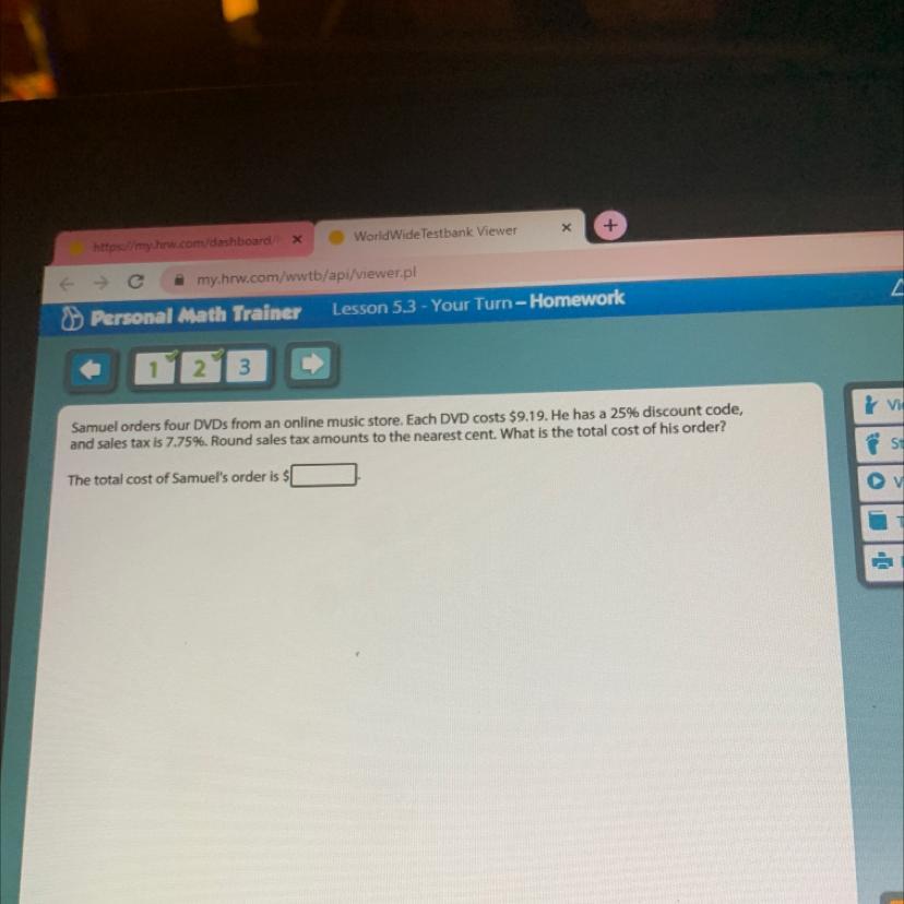 You take 69 * 0.35 and then take that total (24.15) so 60-24.15= 35.85 then to find the tax take 35.85*.07=2.51 so your answer is 35.85+2.51=38.36
