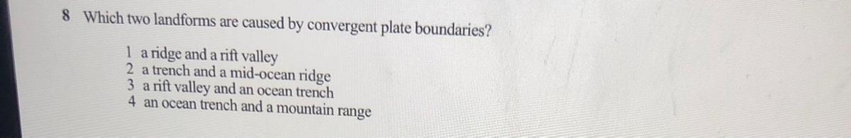 4. An ocean trench and a mountain range.