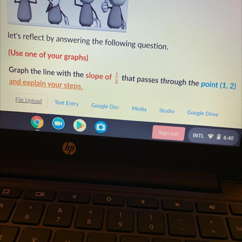 I don’t have any paper near me but on ur graph paper start at the point (1,2) and go up 1 and to the right 3 and make a point. Then go back to point (1.2) and go down 1 and to the left 3. Make a point there and draw a line and u have a graph! Hopefully this helps!