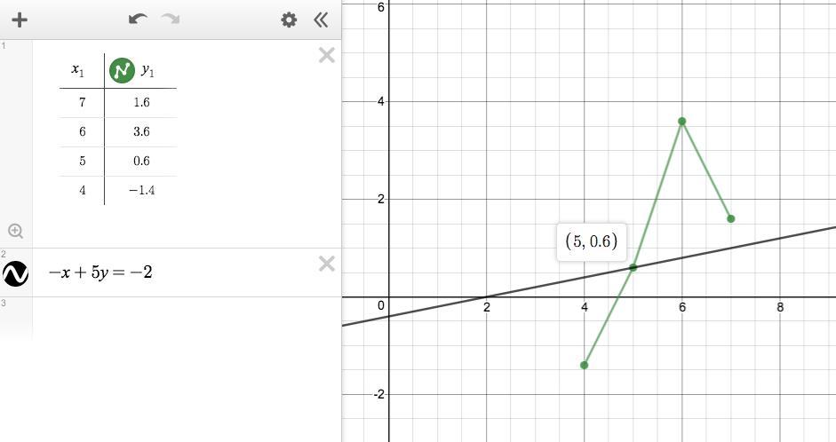 Strictly speaking, the points connecting the dots of the second function are not part of the function. They are there simply to provide a visual aid in locating the points. As we see, the line goes through point (5, 0.6) exactly.