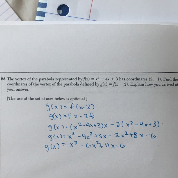since the original or "parent" function is y = x²−4x+3, if we change the "x" argument to "x-2", we end up with a horizontal shift.