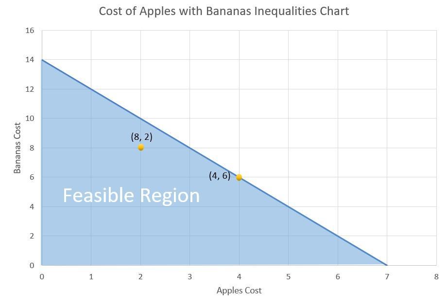 The above inequality can be plotted with Microsoft Excel and the feasible region shaded as shown in the attached diagram