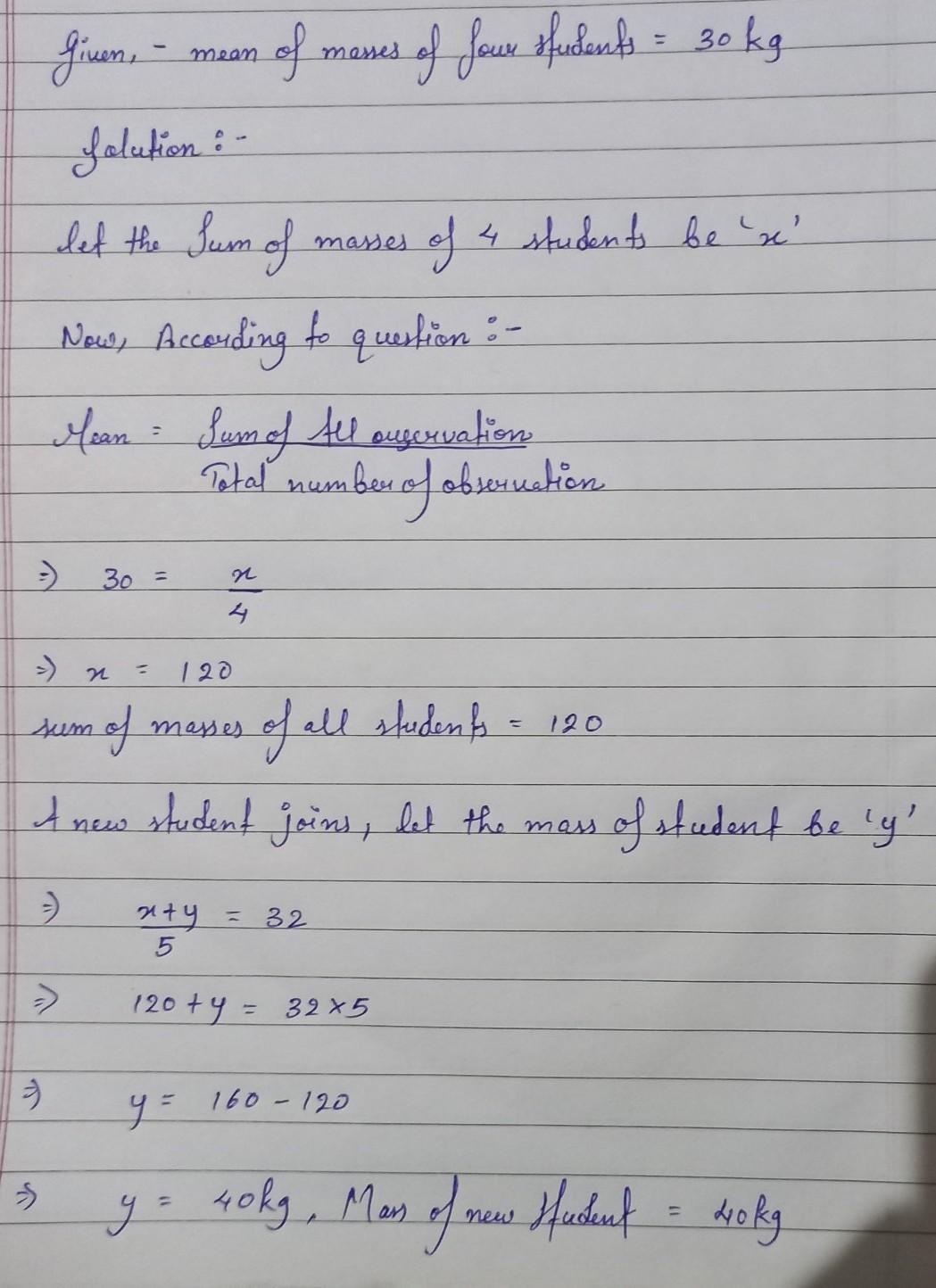 Mass of New student who joined the group will be :