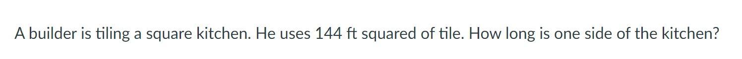 We know that this is a square space, which means both sides are the same length. So, from that we know (something) x (something) = 144.
