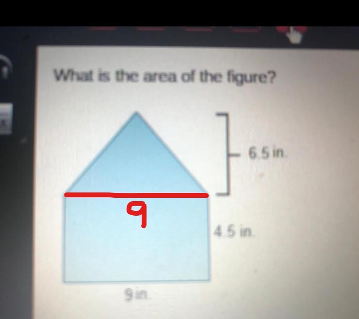 Now let's find the area of the triangle on top. The area of a triangle is the base times the height divided by 2.