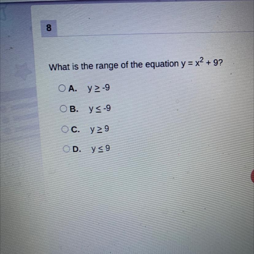 The range of the equation is y ≥ 9 ⇒ C