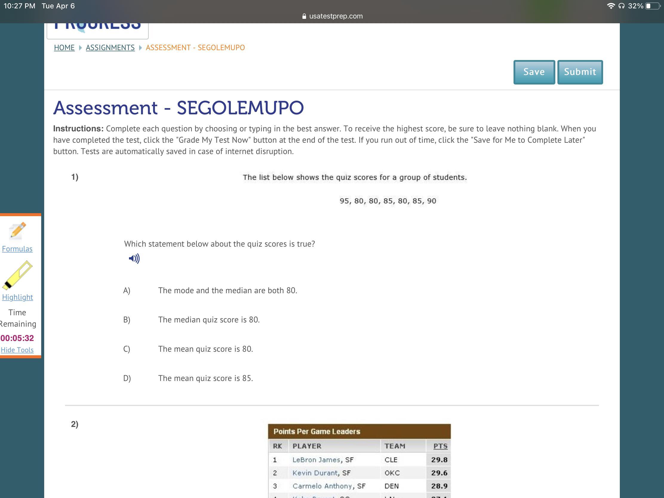 D is right because it is 85!