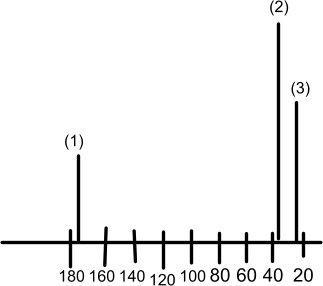 The first peak at approximately 172 ppm is from carbon (1) COOH. The second peak is at approximately 23 ppm and is by carbon number (3) CH2. and the third peak is at approximately 37 ppm and is due to group number (2) CH2.
