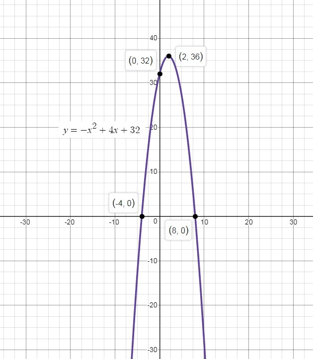 Therefore the y-intercepts are (-4,0) and (8,0).