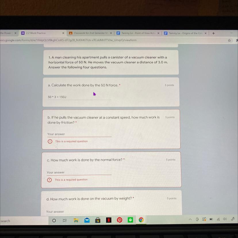 The work done by friction = 150 J