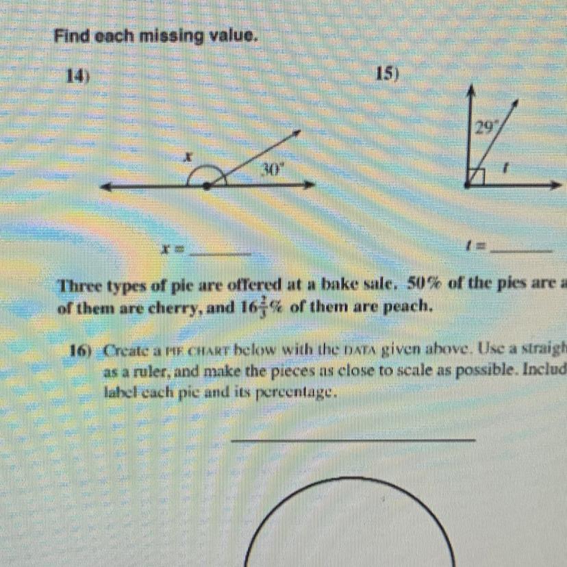 14) 160 because of supplementary angles 15) 61 because of complementary angles