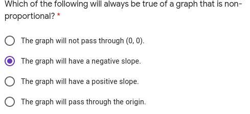 The correct statement that is true of a graph that is non-proportional.