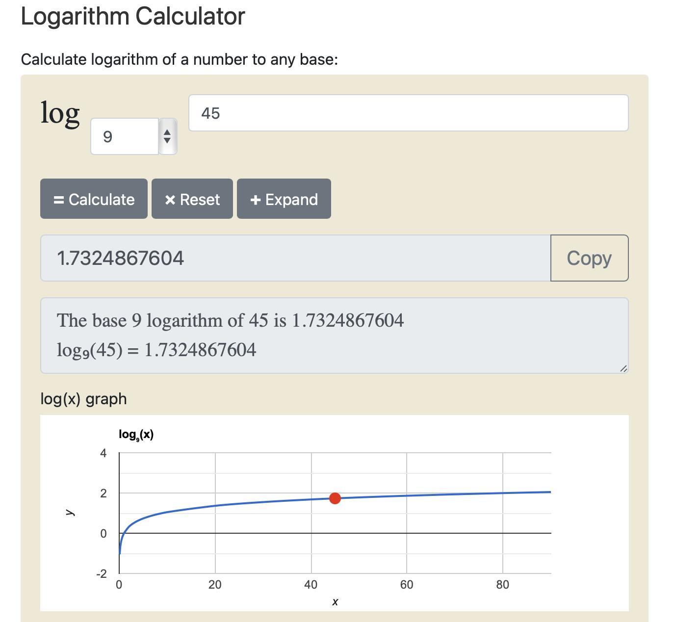 Convert 45 = 9^√x << === >> log9 (45) = √x