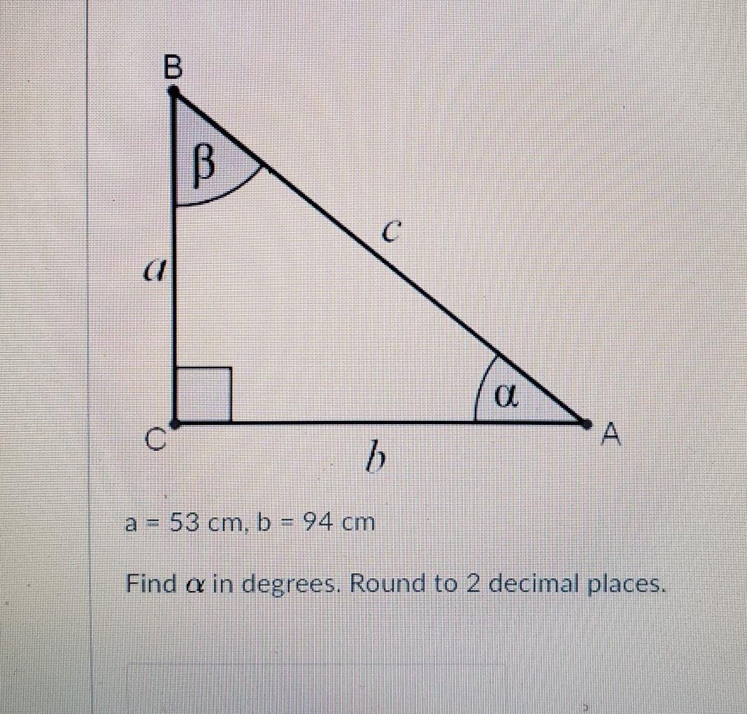 tan = opp/adjacent = 53/94 = 0.5638