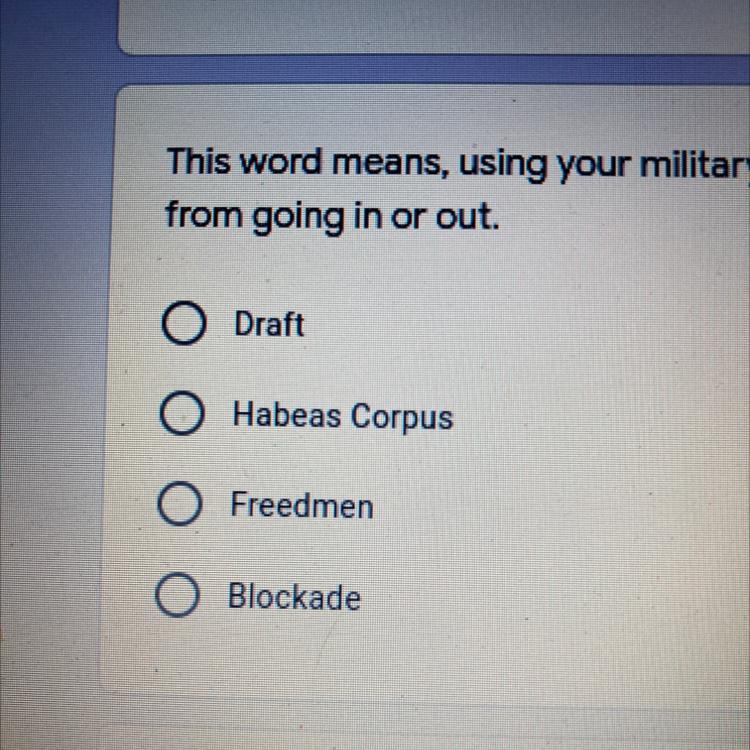 This word means, using your military to seal off a place and keep goods