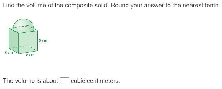 The volume of the entire solid is (512 + 133.9) cm^3, or 646.0 cm^3