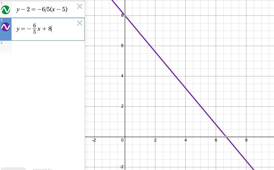 What is the equation of the line that passes through the point (5,2) and has a slope of -6