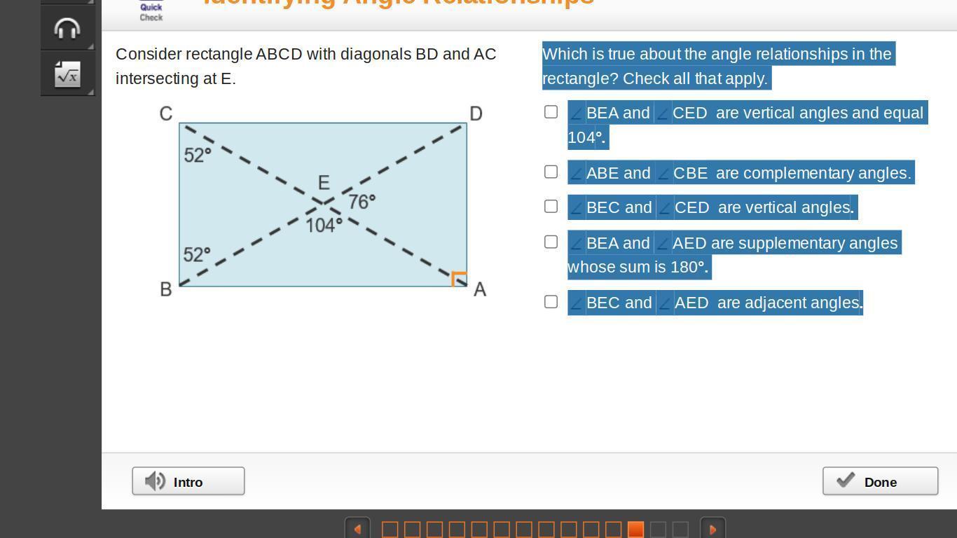 ∠BEA and ∠AED are supplementary angles. 104 + 76 = 180
