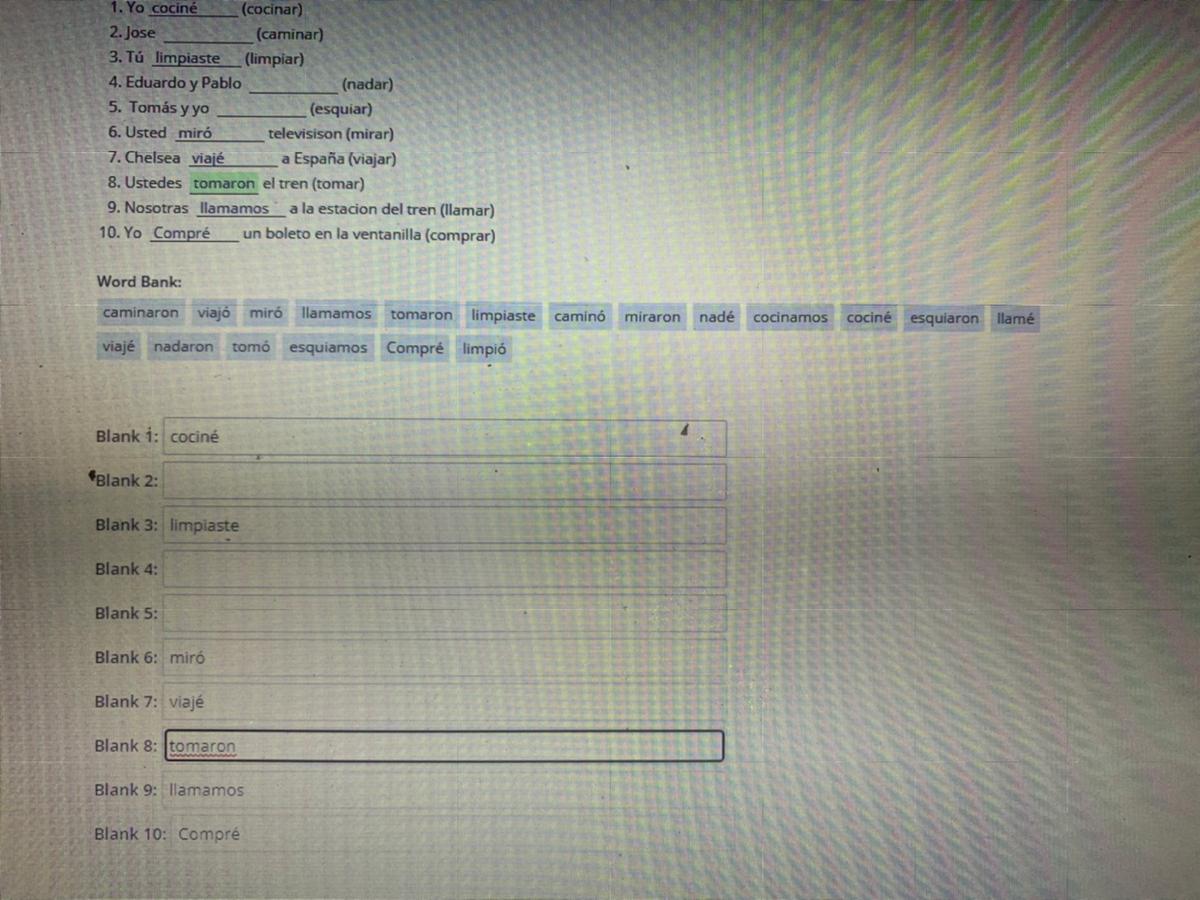 7)Chelsea viajo a Espana, "viajo"with a tilde in the last o