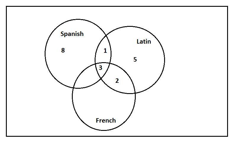 Thus Student who wants Latin and Spanish both only is 11-5-3-2=1