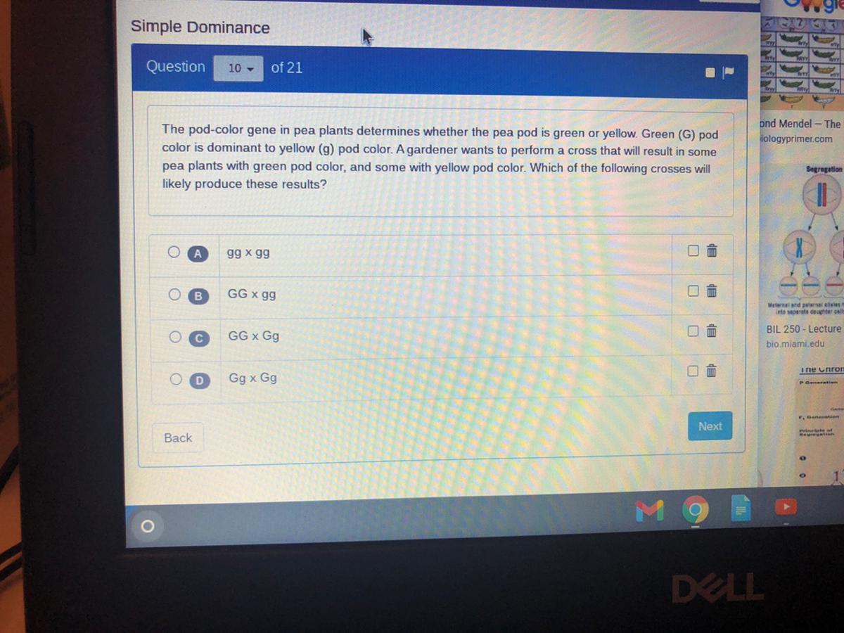 The heterozygous black-eyed MendAlien has the genotype Bb. The orange-eyed MendAlien has the genotype bb. The result of this cross is two Bb offspring and two bb offspring. This means that two of the offspring have black eyes and two of the offspring have orange eyes. This 2:2 ratio then reduces to 1:1</span>