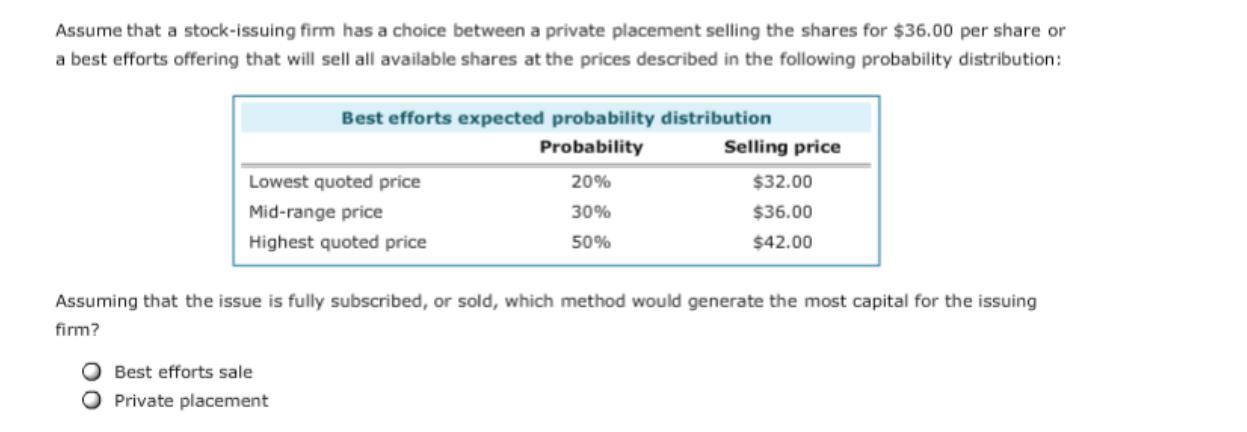 Assuming that the issue is fully subscribed, or sold, which method would generate the most capital for the issuing firm