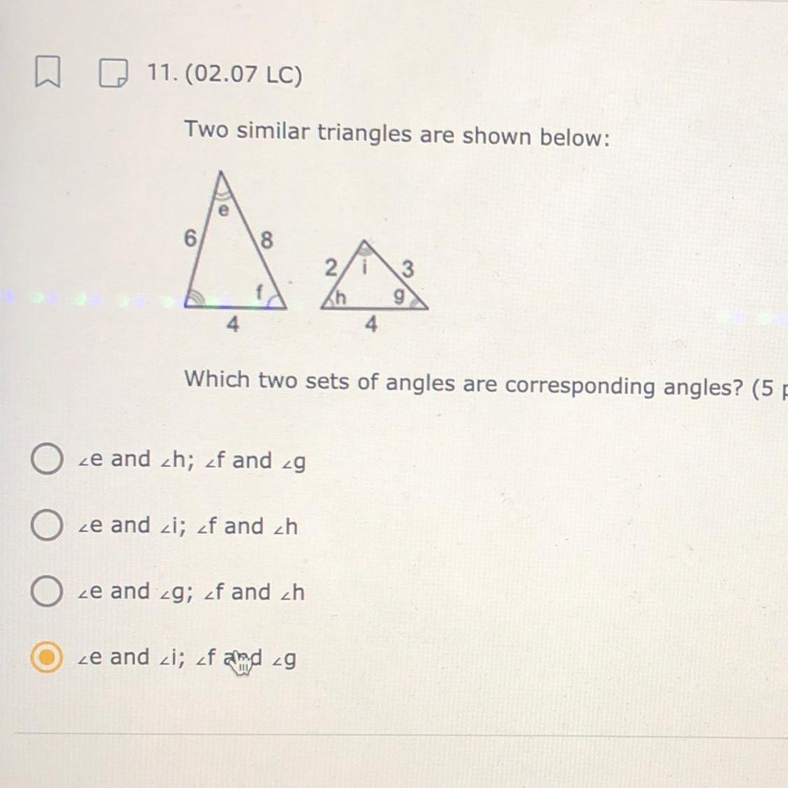 (h & f) ; (e & g) are corresponding angles
