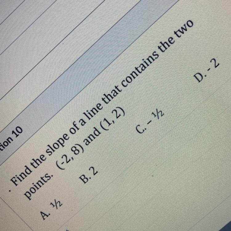 Find the slope of a line that contains the two points (-2,8) and (1,2)