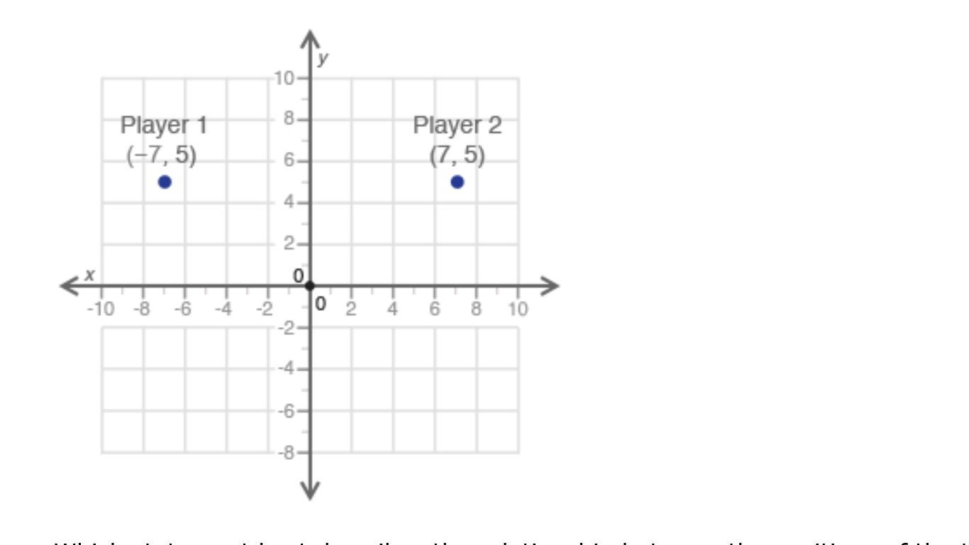 Player 1's position is Player 2's position reflected across the y-axis; only the signs of the x-coordinates of Player 1 and Player 2 are different.