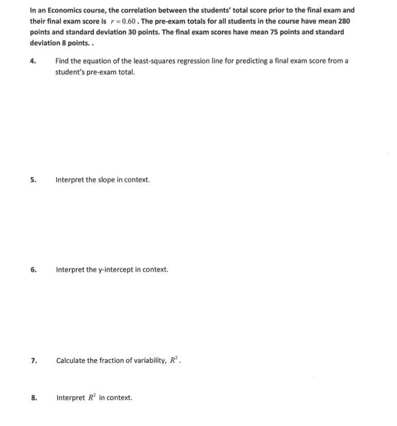 , means that a certain proportion (or percentage) of the variance in the response variable can be explained by the explanatory variable. In context, this means that 36% of the variance in final exam scores can be explained by the pre-exam scores.