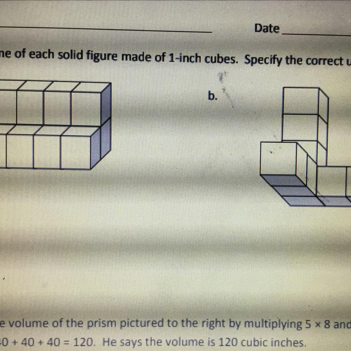 V = 4/3 pi r^3 where r is the radius and pi = 3.14