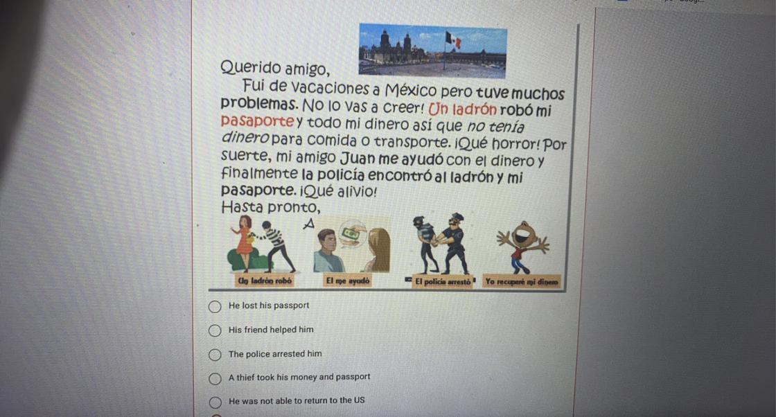 The translation is, "<span>If you go to another country and do not understand the menu in Spanish, sometimes they have one in English."