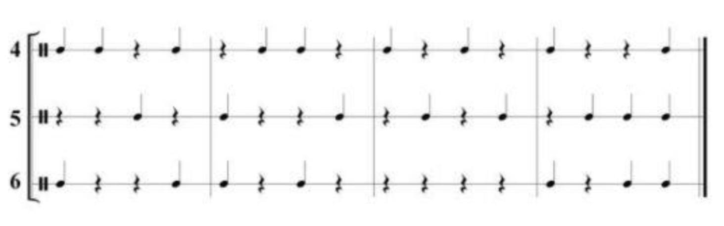 1, 2, (3) , 4, (1), 2, 3, (4), 1 ,(2), 3, (4) ,1, (2), (3), 4
