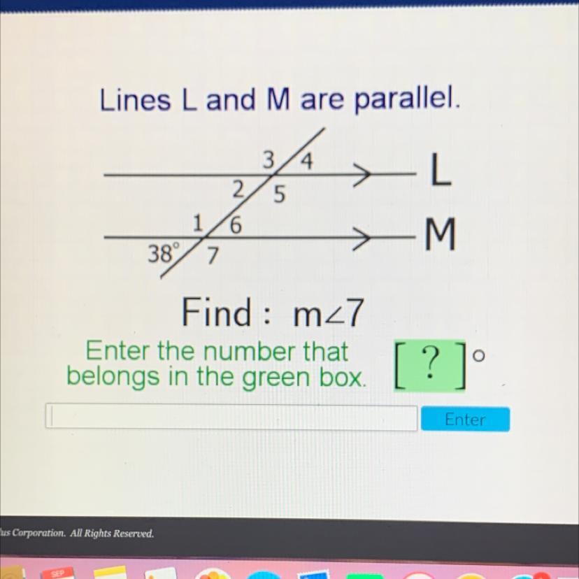 As 38 degree and angle 7 form a linear pair, they are supplementary