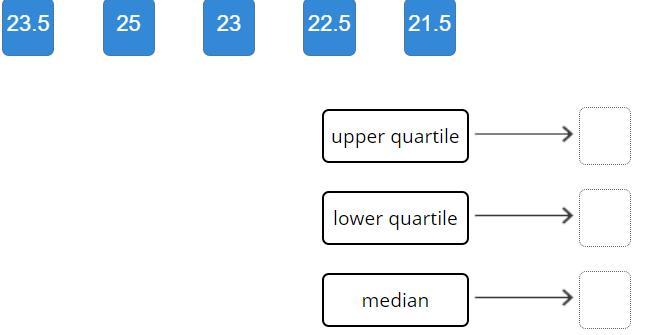 Q1 = (21 + 22) / 2 = 43/2 = 21.5 <== lower quartile