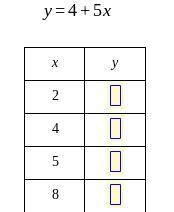 Fill in the table using this function rule y = 4 + 5x