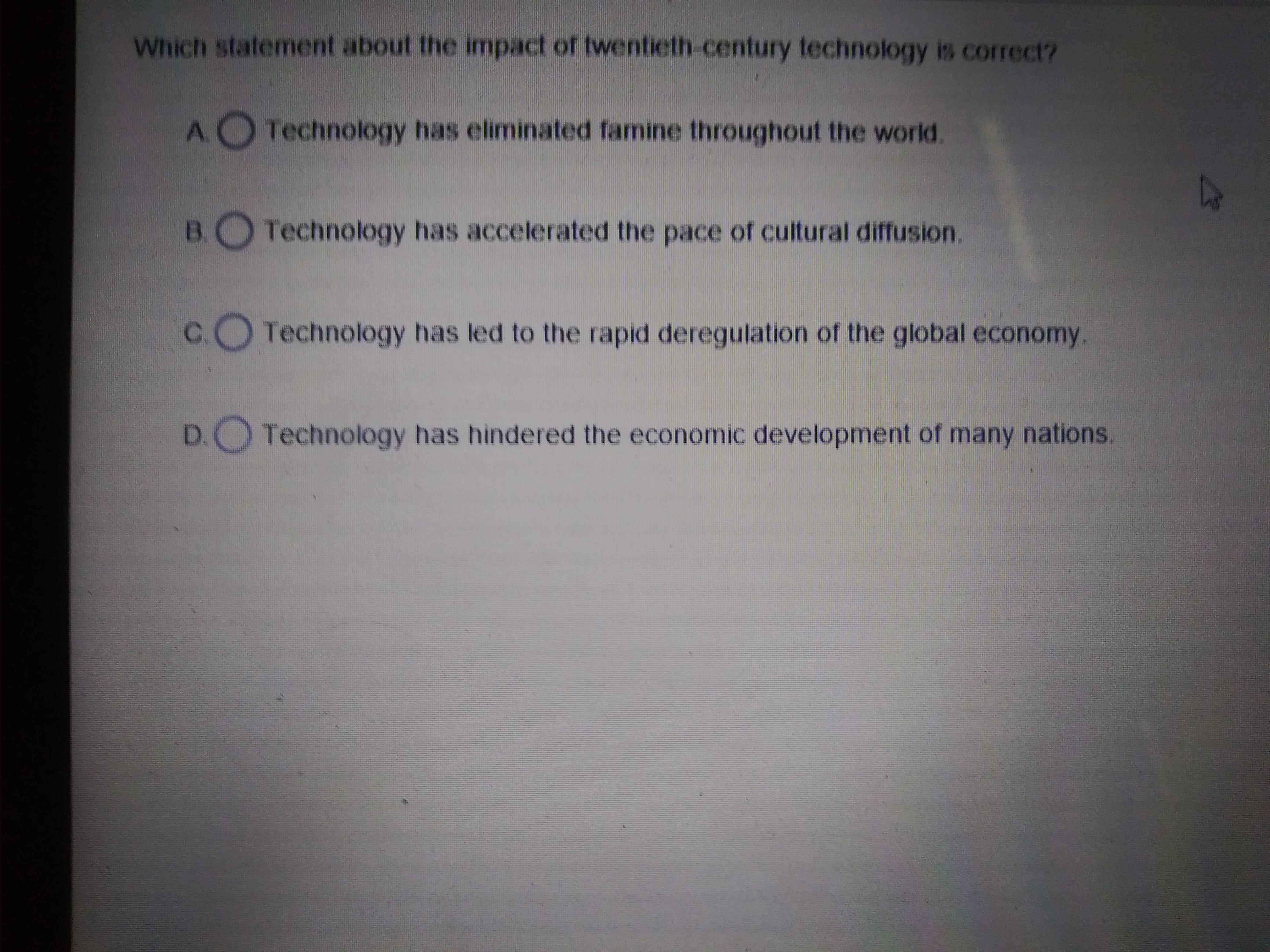 Which statement about the impact of the twentieth-century technology is correct?