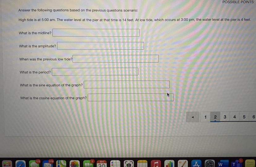 5) h = 5ft sin(2πt/20) where t is in hours, and the sine is in radians